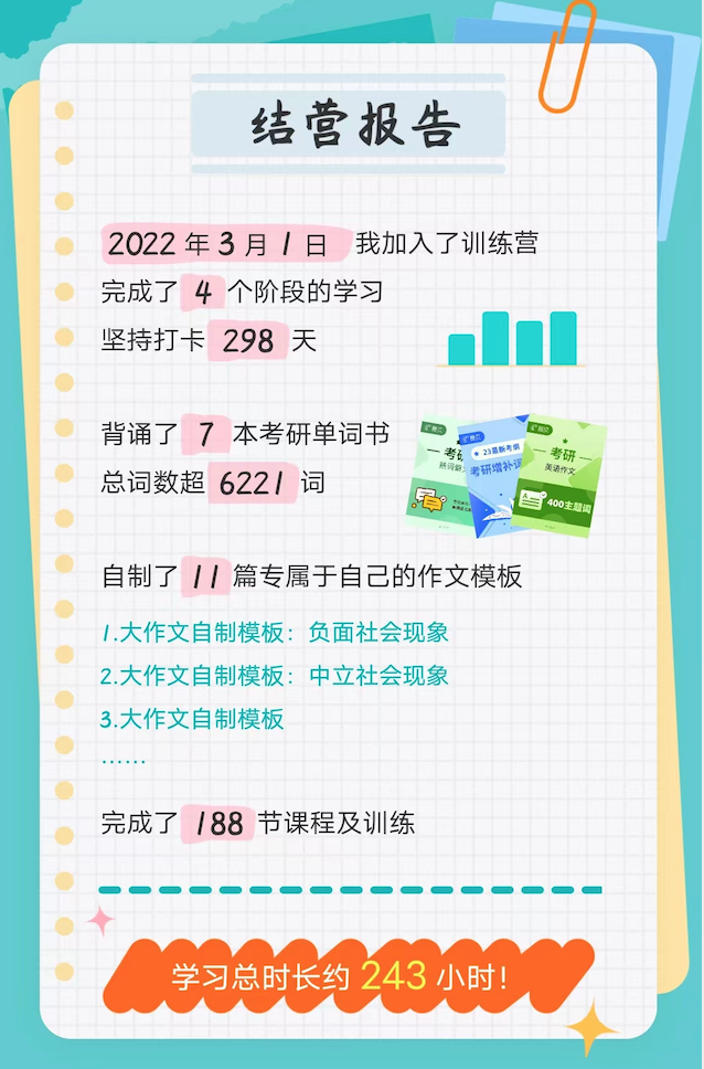 最开始接触扇贝是在2021年的11月,背了一段时间单词,后来我选择加入了扇贝的考研训练营,这也促成了我和扇贝故事的开始,在训练营,我学到了很多,没有一天缺席。
